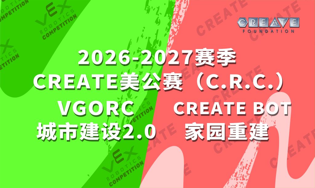 2025-2026赛季 CREATE 美公赛 (C.R.C.)CREATE J.R.-分秒必争 赛事规则 一、团队要求 1.1 参赛人数 3  … 阅读更多 - 2026-2027赛季 CREATE 美公赛 (C.R.C.)VGORC-城市建设2.0&CREATE BOT-城市重建 赛事规则